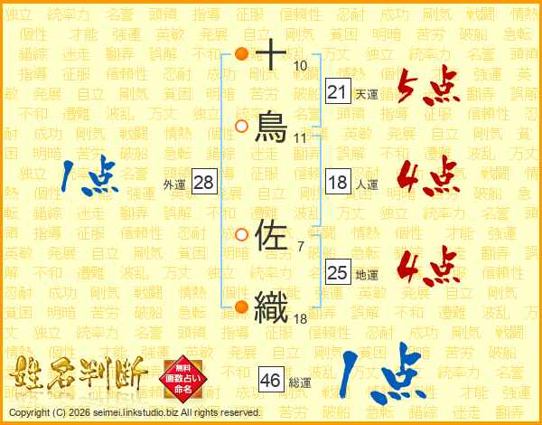 十鳥佐織さんの総運は46画の1点!