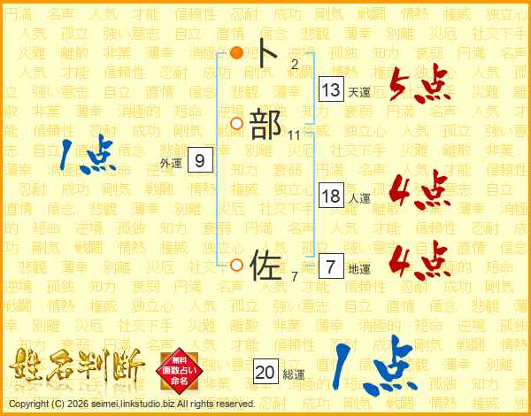 卜部佐さんの総運は20画の1点!