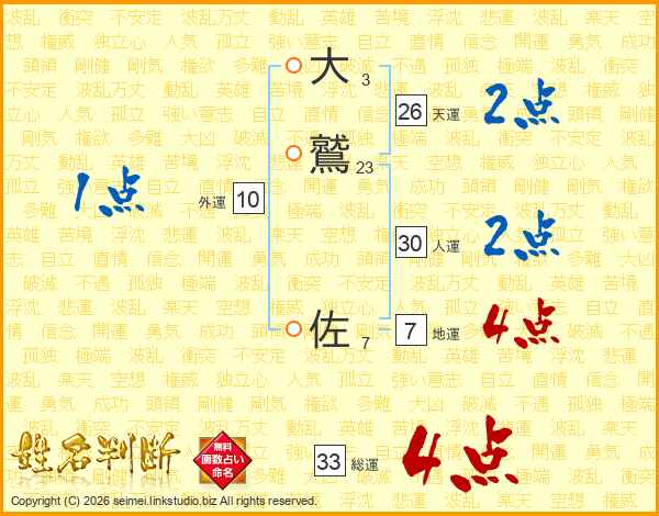 大鷲佐さんの総運は33画の4点!