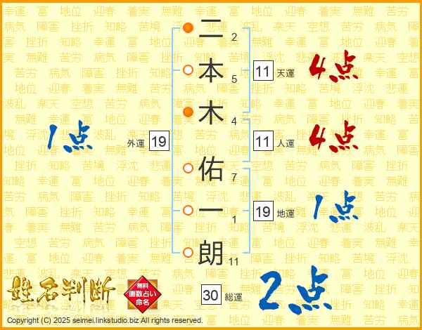 二本木佑一朗さんの人運は11画の4点!