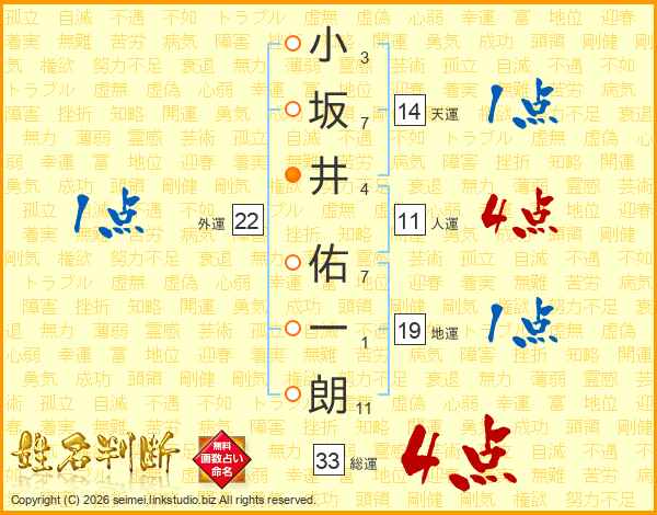 小坂井佑一朗さんの総運は33画の4点!