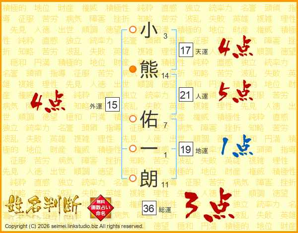 小熊佑一朗さんの総運は36画の3点!