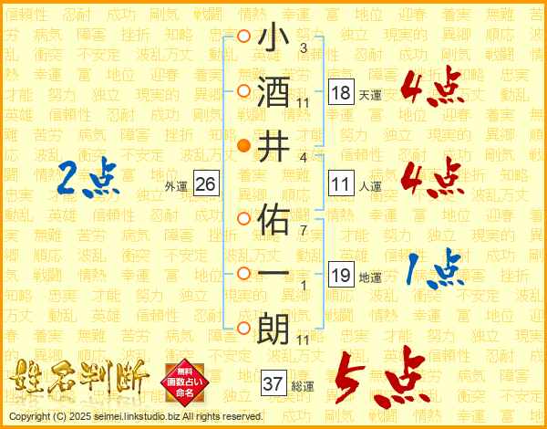 小酒井佑一朗さんの総運は37画の5点!