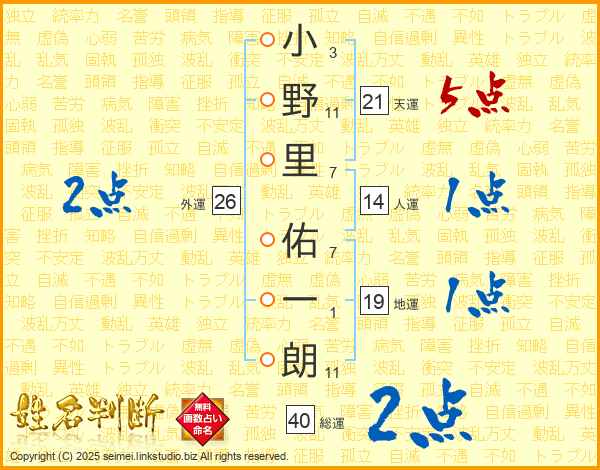 小野里佑一朗さんの総運は40画の2点!