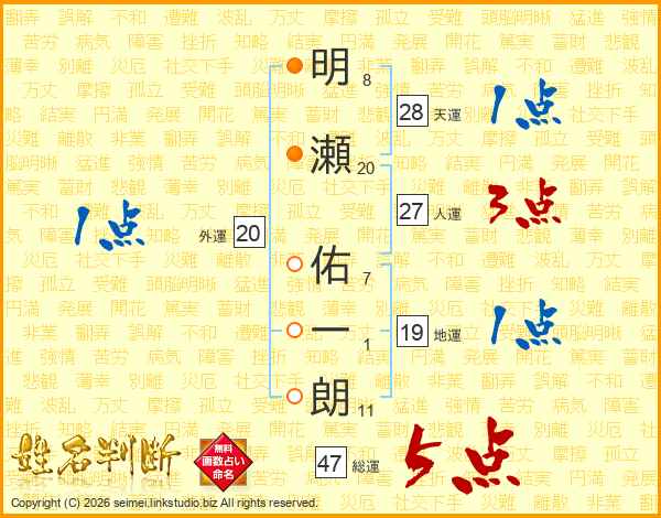 明瀬佑一朗さんの総運は47画の5点!
