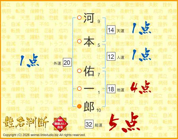 河本佑一郎さんの総運は32画の5点!
