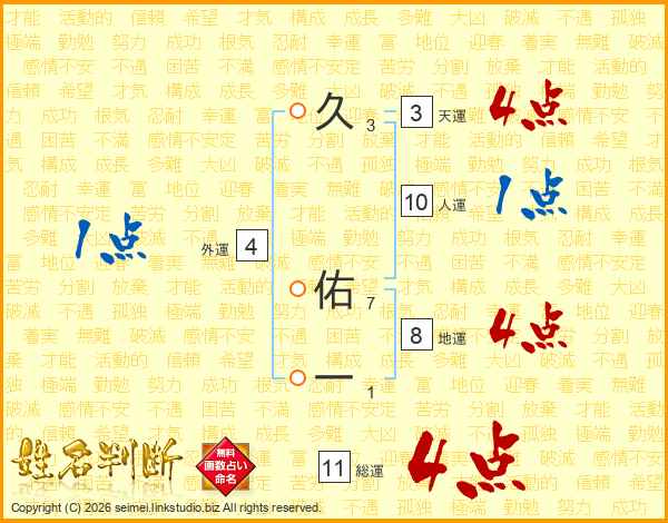 久佑一さんの総運は11画の4点!