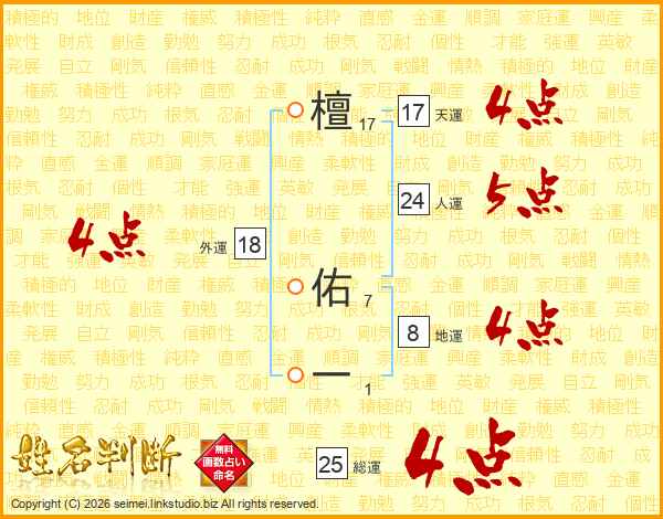 檀佑一さんの総運は25画の4点!