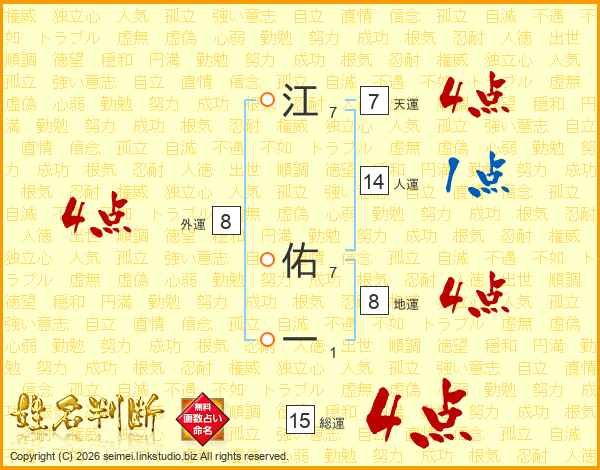 江佑一さんの総運は15画の4点!