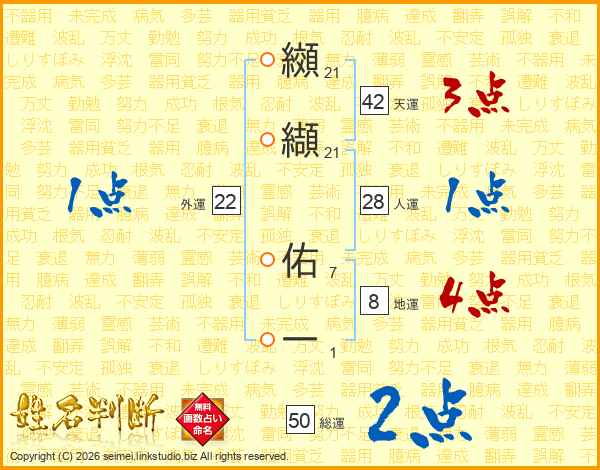 纐纈佑一さんの天運は42画の3点!