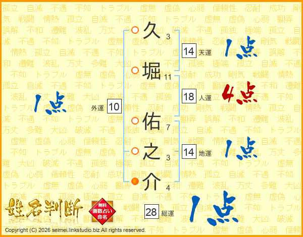 久堀佑之介さんの天運は14画の1点!