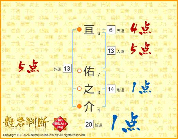 亘佑之介さんの外運は13画の5点!