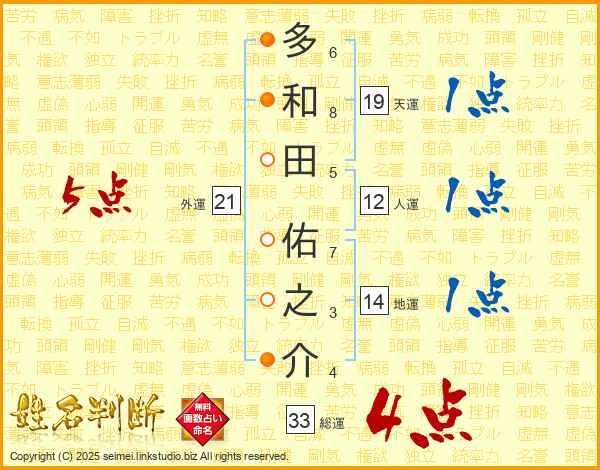 多和田佑之介さんの総運は33画の4点!