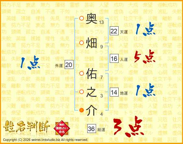 奥畑佑之介さんの総運は36画の3点!