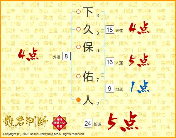 下(3画)久(3画)保(9画) 佑(7画)人(2画)