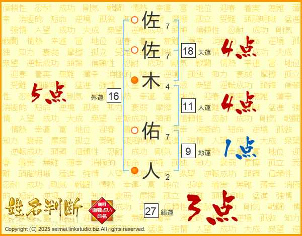 佐(7画)佐(7画)木(4画) 佑(7画)人(2画)
