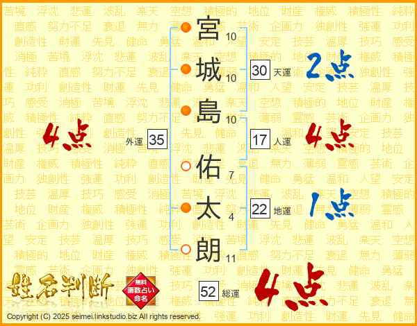 宮城島佑太朗さんの外運は35画の4点!