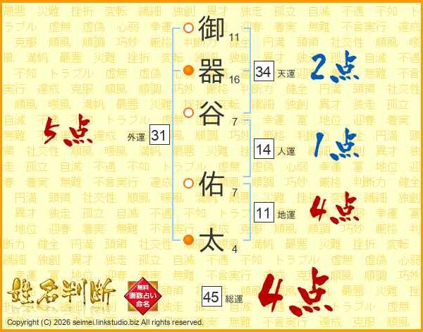 御器谷佑太さんの総運は45画の4点!