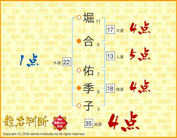 堀合佑季子さんの総運は35画の4点!