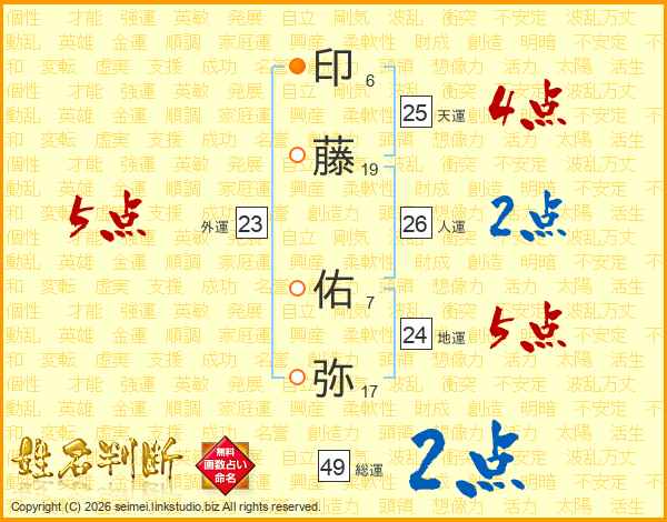印(6画)藤(19画) 佑(7画)弥(17画)