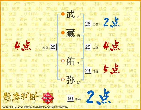 武(8画)藏(18画) 佑(7画)弥(17画)