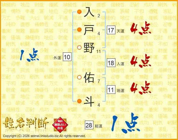 入戸野佑斗さんの地運は11画の4点!