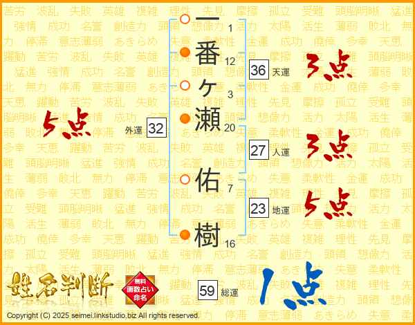 一番ヶ瀬佑樹さんの外運は32画の5点!
