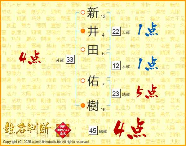 新井田佑樹さんの総運は45画の4点!