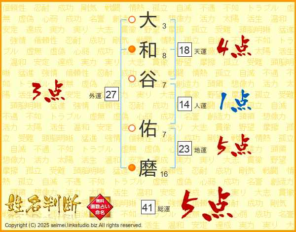 大(3画)和(8画)谷(7画) 佑(7画)磨(16画)