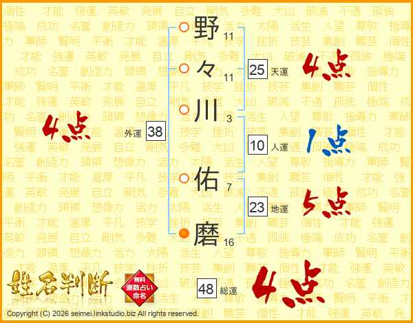 野々川佑磨さんの外運は38画の4点!