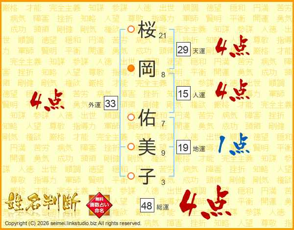 桜岡佑美子さんの外運は33画の4点!