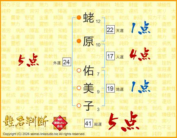 蛯原佑美子さんの総運は41画の5点!
