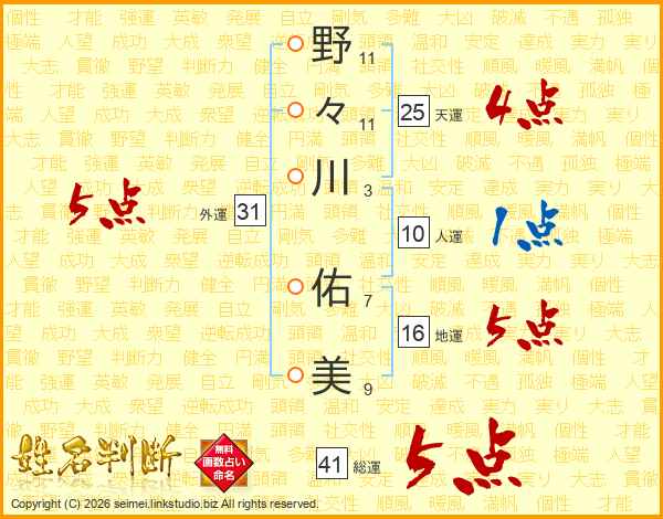 野々川佑美さんの総運は41画の5点!