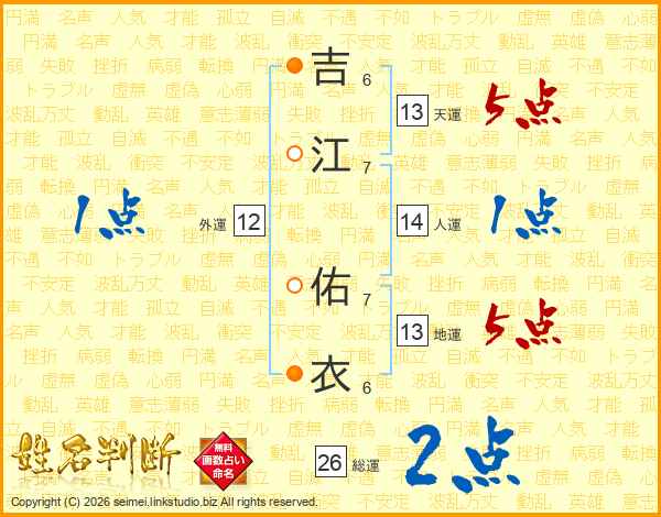 吉江佑衣さんの総運は26画の2点!