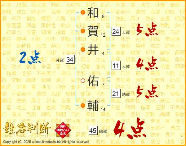 和(8画)賀(12画)井(4画) 佑(7画)輔(14画)