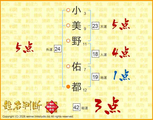 小美野佑都さんの総運は42画の3点!