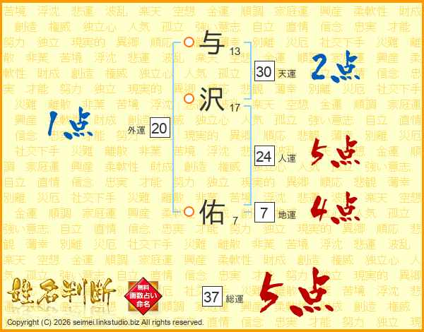 与沢佑さんの総運は37画の5点!