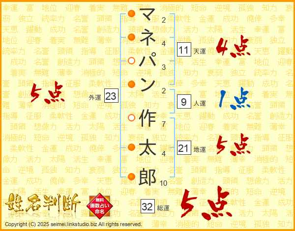 マネパン作太郎さんの総運は32画の5点!