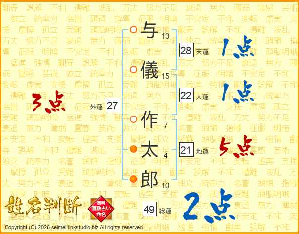 与儀作太郎さんの総運は49画の2点!