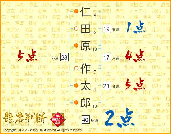 仁(4画)田(5画)原(10画) 作(7画)太(4画)郎(10画)