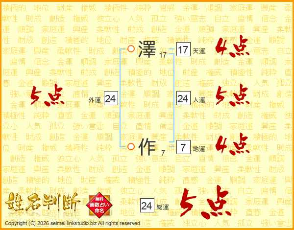 澤作さんの総運は24画の5点!