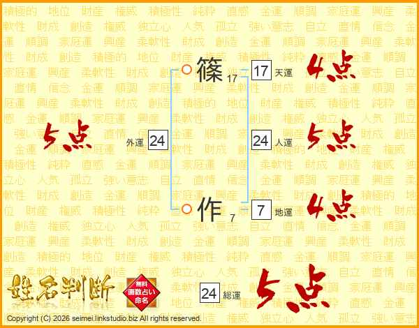 篠作さんの人運は24画の5点!