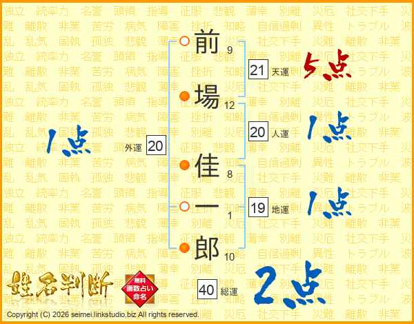 前場佳一郎さんの天運は21画の5点!