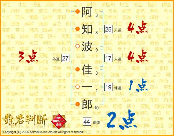 阿知波佳一郎さんの天運は25画の4点!