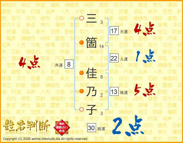 三(3画)箇(14画) 佳(8画)乃(2画)子(3画)