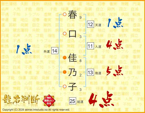 春口佳乃子さんの総運は25画の4点!