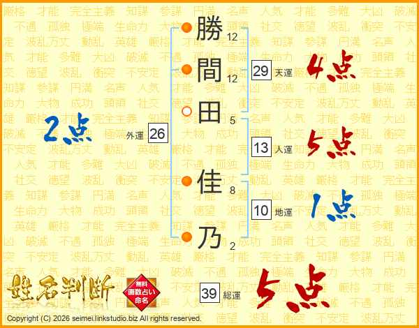 勝間田佳乃さんの総運は39画の5点!
