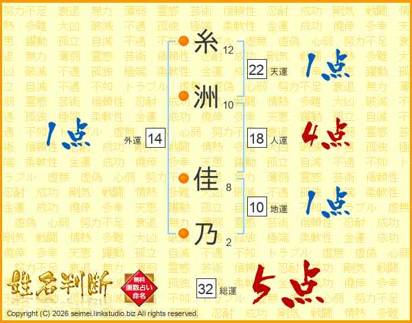 糸洲佳乃さんの総運は32画の5点!