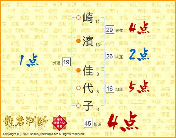 崎濱佳代子さんの人運は26画の2点!