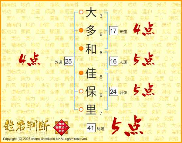 大多和佳保里さんの天運は17画の4点!